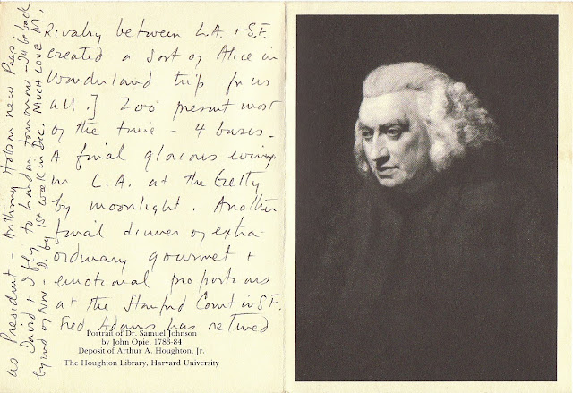 On our way to the register, Tom found, tucked inside the pages of the book, what appeared to be a postcard with Samuel Johnson's portrait on the front of it.